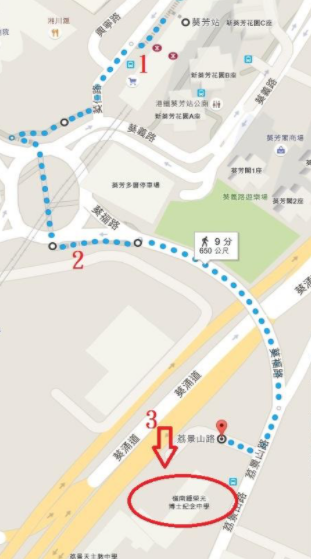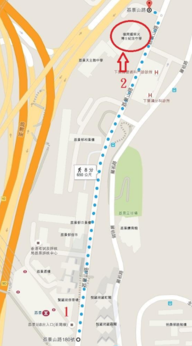 3. 沿荔景山道直行(右邊)就到達學校