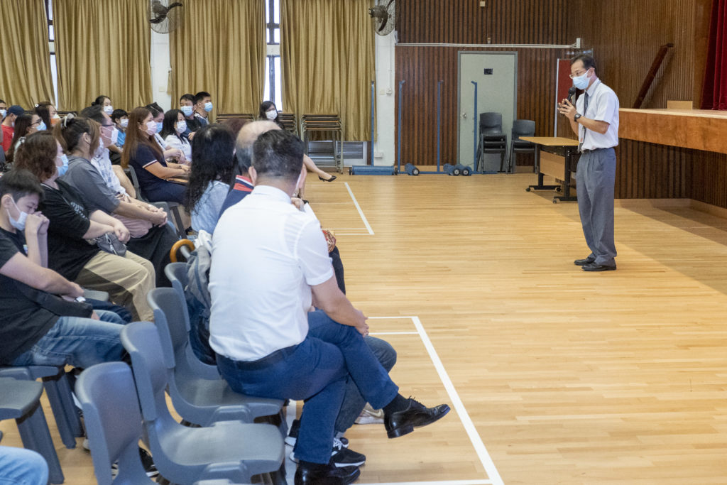 本校為讓中一新生家長更了解本校的特色及設施,也旨在加強家長與校方的互動,特意在七月十八日(星期日)舉辦「中一新生家長日」活動。活動由鄺綺詩校長打開序幕,講解本校的辦學理念、發展變革及近年學校的重點發展項目,能夠讓家長加深對學校的認識;及後由英文科科主任陳生皓老師分享個人在學習英語的成功秘訣,再教導家長利用小步子,指出學習英語的步驟及方法,也讓學生感受到學習英語的重要性,不少家長也大讚獲益不少。隨後由凌雅麗助理校長講解本校的多元學習活動,設有二十多個不同類型的特色屬會、校隊、興趣班及義工服務團供學生參與;本校亦把「其他學習經歷」設定為正規上課時數,舉辦不同的生涯規劃、德育及公民教育、班級經營、社會服務以及體藝活動;並每年設立四次「課外活動日」,讓全校學生能培養興趣、擴闊視野。最後則由校牧黃偉東長老講解本校的「堂校合作」活動,透過「大手佈道」、「埋身牧養」及「領袖培訓」的策略教導學生認識聖經真理及培養學生靈命成長。本校亦與多間地區教會及福音機構保持緊密的協作關係,為學生提供更多元化的活動及照顧學生全人成長,例如每日靈修活動、體驗式宗教科、「青苗」成長同行計劃、啟導學習計劃等。而家長教師會副主席亦負責講解本校的家校合作活動,包括親子師生燒烤聯誼、美食工作坊、普天同慶聖誕聯歡晚會、環保校服及制服回收、水仙花班、親子大旅行、會員大會及執行委員會選舉、家長嘉許計劃及傑出家長選舉,藉此加強參與學校活動的共融氣氛。完成禮堂的介紹後,家長隨即參與分班聚會,由老師介紹一些小貼士給家長,包括學生手冊、ECLASS系統的使用,學校提供的多元學生支援服務,學生紀律要求等等,家長亦可就個人疑惑出作提問,活動中家長及老師彼此分享交流,亦可進一步了解學校支援學生及家長的措施。最後,老師帶領各位家長遊覽校園,了解學校的特別室及各項設施,希望他們的子弟可以在未來日子盡快適應及享受嶺鍾中精彩的校園生活。