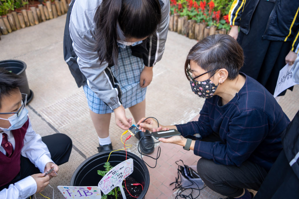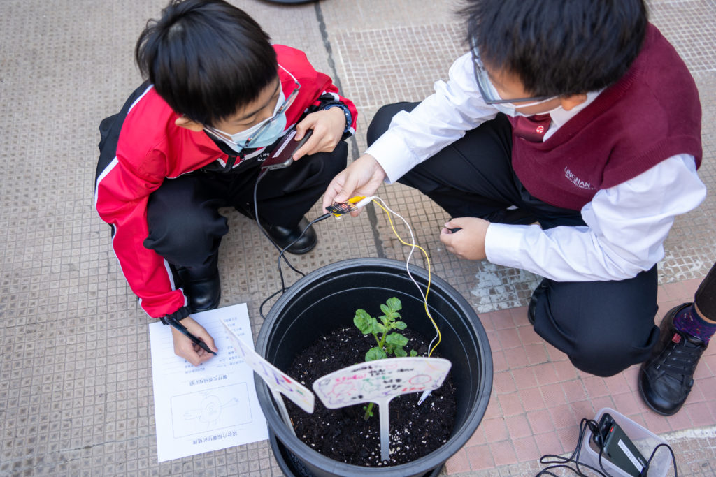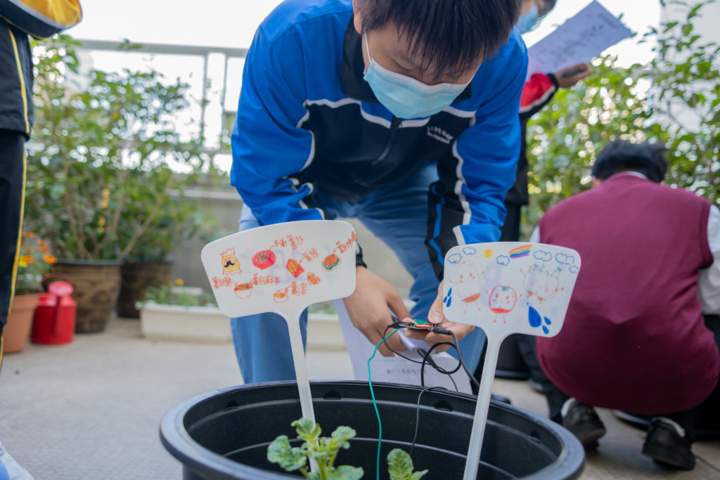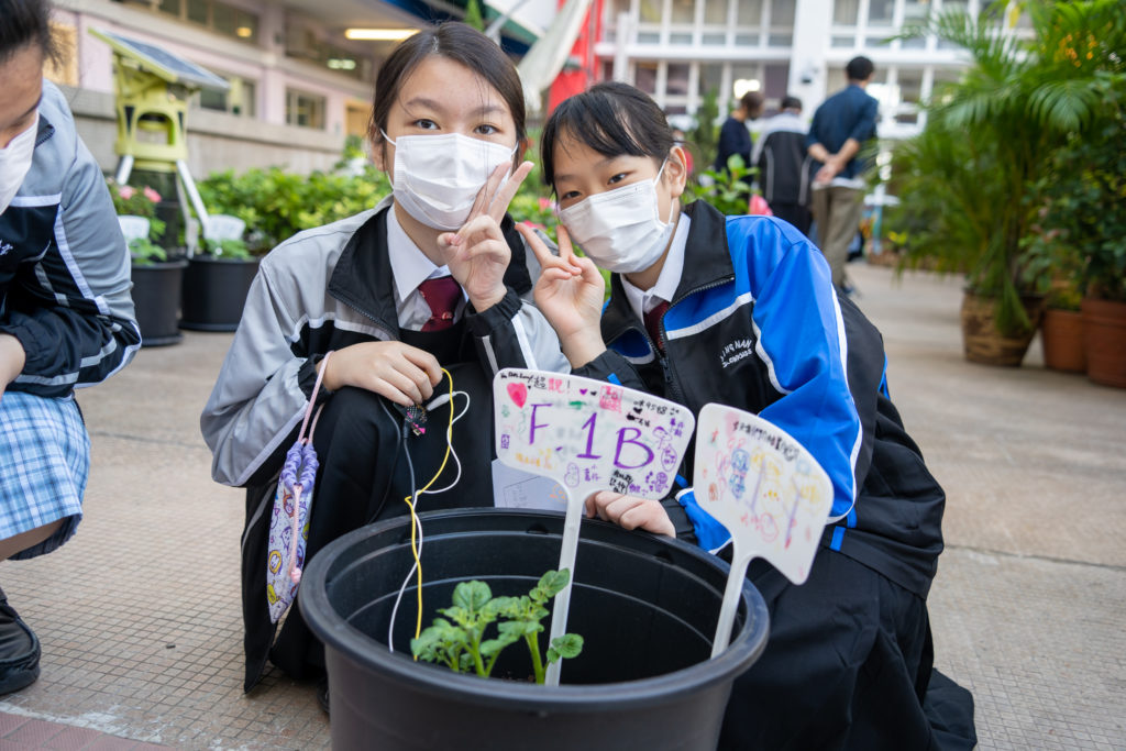 在舒適的秋冬天氣下,中一同學們在設計與科技堂去到學校鍾榮光花園一起種植薯仔。首先,他們要認識薯仔植物的不同部份和生長過程,然後用microbit智能裝置器觀察泥土濕度和生長高度,我們期望同學在生活中明白和體會STEM 知識的用處,當然同學們則更希望數月後能出產更多「嶺鍾好薯」啦!