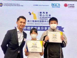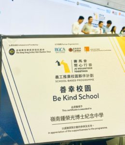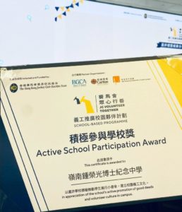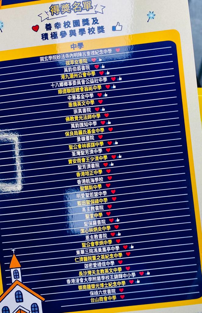 恭喜全級中三同學!上學年,全級中二同學參加了「賽馬會眾心行善:義工推廣校園夥伴計劃」,透過一連串的工作坊,認識了「義工」角色的基本概念,並嘗試在日常生活中進行他們的「小善幸」。今天,他們的小善幸獲得認可,令學校成為計劃下的「善幸校園」和「積極參與學校」。在本學年,中三至中五學生將會獲挑選,參加計劃下的義工領袖專題項目,並將於社區內策劃一項為長者提供的服務。