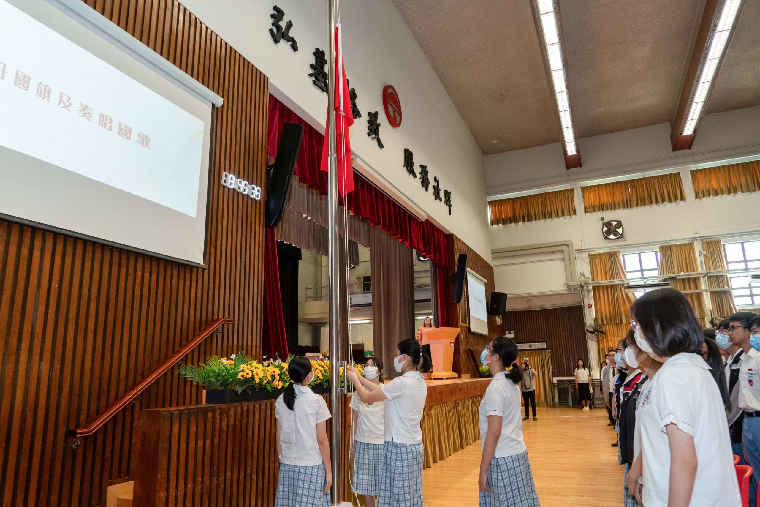開學日大家濟濟一堂,在禮堂參加本學年的開學禮。