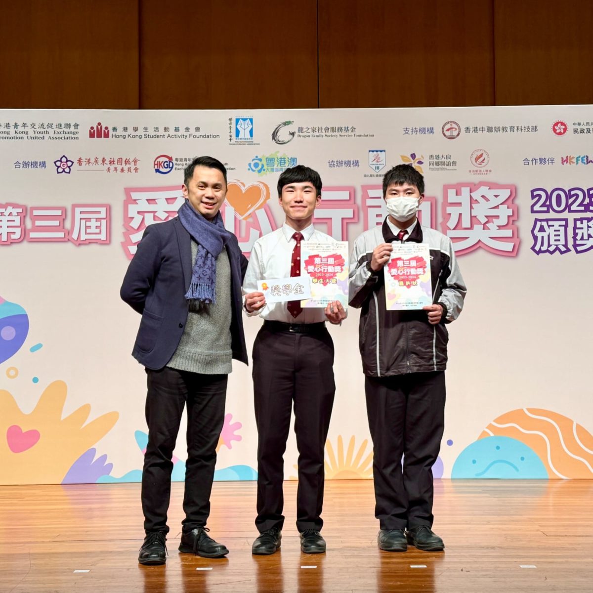 分類 活動剪影 愛心行動獎 13-1-2025 文章作者 作者: system 文章發佈日期 2025-03-28 本校中四級蔣同學與林同學因積極參與義工服務,在第三屆愛心行動獎中脫穎而出,榮獲嘉許。其中,蔣家俊同學更獲頒「愛心行動學生大使」的殊榮及獎學金,以表揚其傑出貢獻。#第三屆愛心行動獎#弘基格致服務社群#服務學習